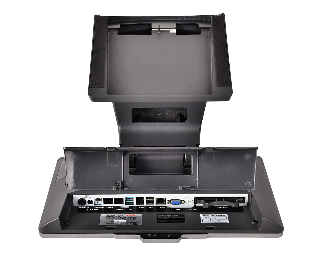 АТОЛ Jazz 16 Pro предназначен для промышленного использования в режиме 24/7 и спроектирован таким образом, чтобы работа оборудования не прекращалась даже в непредвиденных ситуациях. Благодаря металлическому корпусу и устойчивой подставке моноблок надежно стоит на рабочем столе. Влагозащищенный экран не даст жидкости проникнуть внутрь POS-терминала, если на него прольют напиток. Все кабели скрыты в подставке: помимо эстетичного внешнего вида, это гарантирует надёжность работы терминала и защиту от случайного отключения кассового оборудования.
