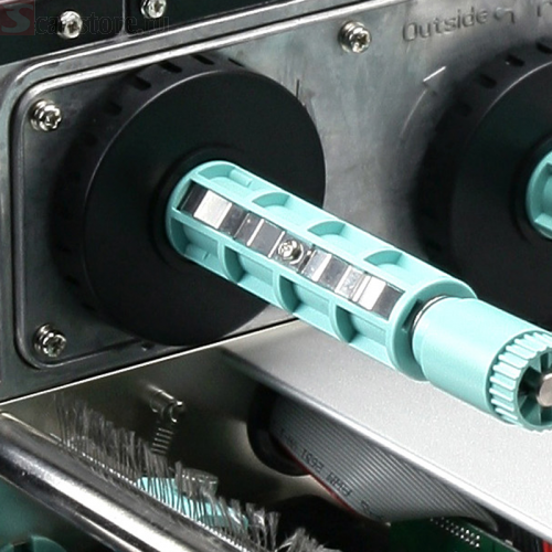 В принтер штрих-кодов можно установить красящую ленту длиной до 450 метров, при этом тип намотки ленты не имеет значения: принтер настраивается на работу как с лентами ink out (красящий слой наружу), так и с лентами ink in (красящий слой внутрь).